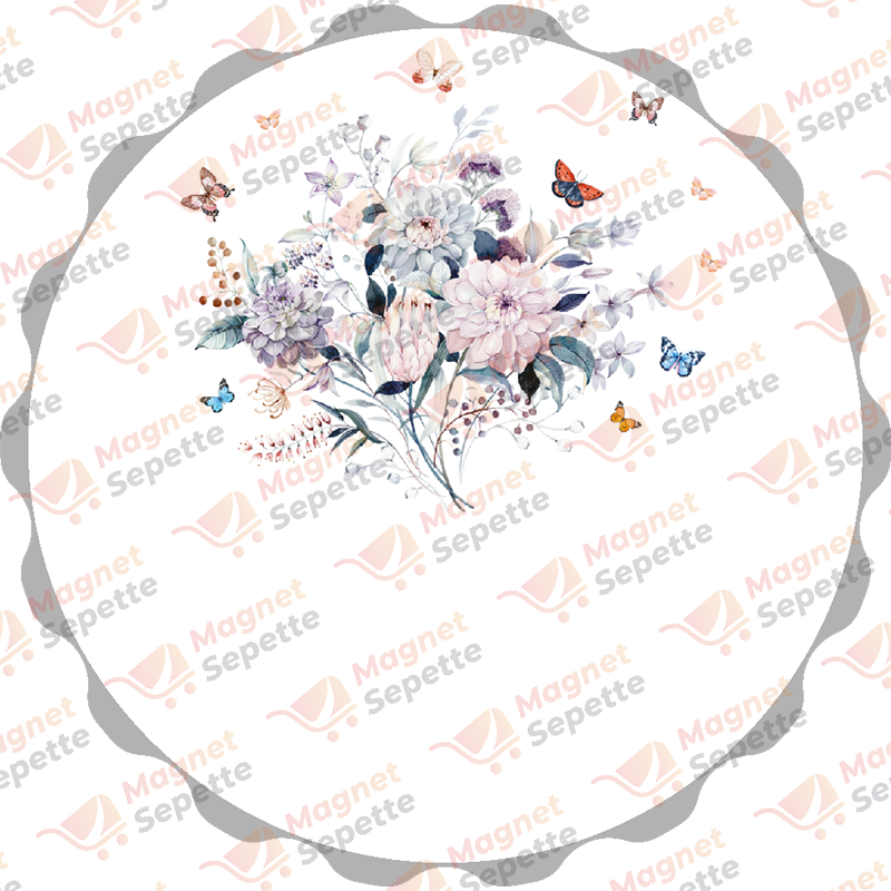 Kelebekli Çiçekli Yuvarlak Nikah Magnet
