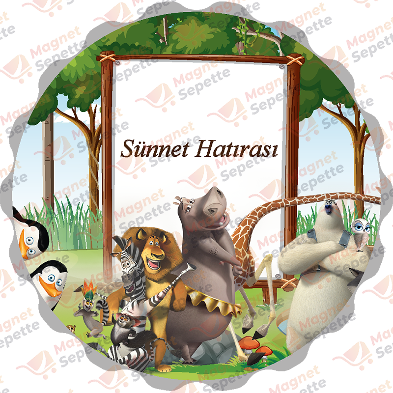 Madagaskar Temalı Yuvarlak Sünnet Magnet
