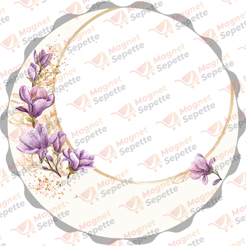 Mor Çiçekli Fotoğraflı Nişan Magnet