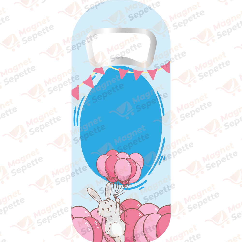 Pembe Balonlu Tavşanlı Doğum Günü Magnet